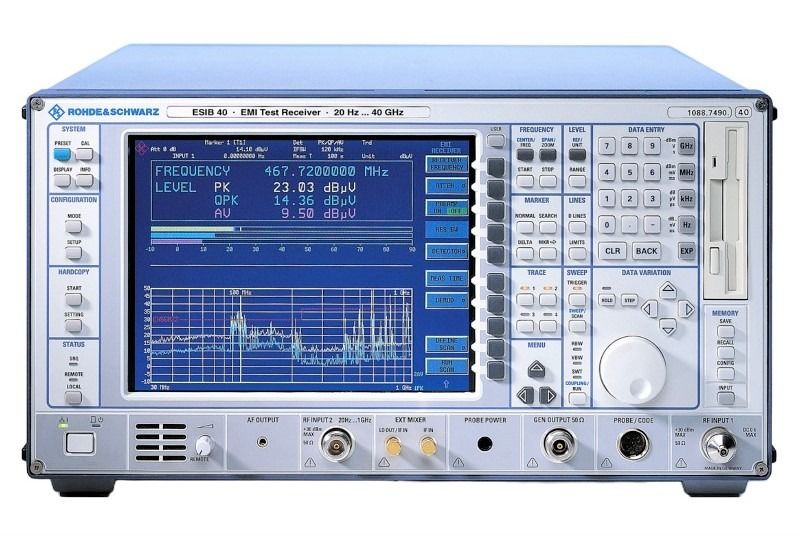 EMI Test Receivers R&S ESIB EMI measurements up to 40 GHz conforming to standards The R&S ESIB family of EMI test receivers combines the flexibility and speed of spectrum analyzers with the large dynamic range required for EMI measurements in conformance with standardsΗ οικογένεια R&S ESIB περιλαμβάνει τρία μοντέλα με διαφορετικά ανώτερα όρια συχνότητας: το ESIB7 (20 Hz έως 7 GHz), το ESIB26 (20 Hz έως 26,5 GHz) και το ESIB40 (20 Hz έως 40 GHz).Το ανώτατο όριο συχνότητας των ESIB26 και ESIB40 μπορεί να επεκταθεί έως 110 GHz με εξωτερικούς αναμειγνυτές (επιλογή FSE-B21)Τα τρία μοντέλα χαρακτηρίζονται από υψηλή ευαισθησία, εξαιρετική ανοσία σε μεγάλα σήματα, χαμηλή αβεβαιότητα μέτρησης και υψηλή ταχύτητα μέτρησης.Το ΕΣΕΒ Ε&Σ εκτελεί μετρήσεις σύμφωνα με όλα τα βιομηχανικά και στρατιωτικά πρότυπα ΕΜΙ, όπως το CISPR, EN, VDE, ANSI, FCC, BS, ETS, VCCI, MIL-STD, VG, DEF-STAN, DO160 και GAM EG13.CISPR16-1 ή VDE0876Το EMI Test Receivers R&S ESIB διαθέτει ένα εύρος συχνοτήτων από 20 Hz έως 7/26.5/40 GHz και 20 Hz έως 1 GHz,Προεπιλογή σε λειτουργία δέκτη (καθορισμένη) και αναλυτή (επιλέξιμη), 3 σταθερά συντονισμένα και 6 ή 7 φίλτρα παρακολούθησης (μοντέλα 26 και 40), προεμφυλιστής με αύξηση 20 dB σε συνδυασμό με προεπιλογή διακόπτη, εύρος ζώνης ανάλυσης από 200 Hz, 9 kHz,120 kHz σε CISPR 16-1, παράλληλοι ανιχνευτές, κορυφή (PK), μέση (AV), οιονεί κορυφή (QP) και RMS (max.4), αυτόματη σάρωση,4 αποθηκεύσιμα ίχνη με έως και 80000 μετρούμενες τιμές το καθένα (250000 τιμές με ένα ίχνος) και ενσωματωμένη λειτουργία ελεγκτή στο Windows NT4.0.